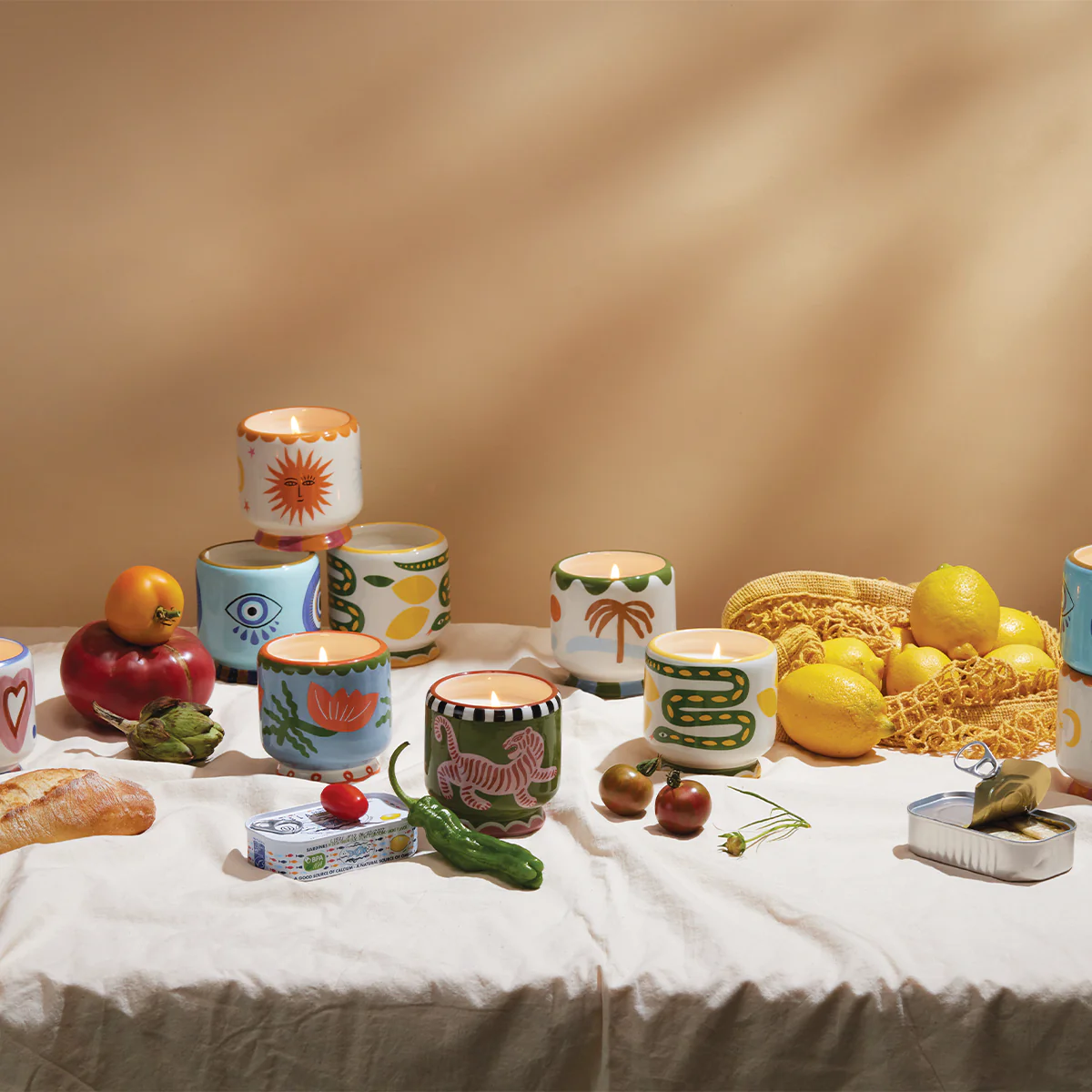 Ces bougies en céramique de 225 g, ornées de détails peints à la main, marient design coloré et parfums audacieux pour éveiller les sens. Elles se complètent idéalement avec les boîtes d’allumettes assorties de la collection.