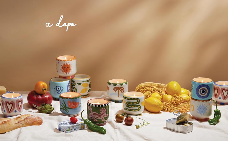 La bougie A Dopo! de Paddywax s’inspire des couleurs et motifs du Maroc et célèbre l’esprit des voyages d’été méditerranéens. Présentée dans un pot en céramique artisanale peint à la main avec couvercle assorti, elle marie design ensoleillé et parfum vibrant.